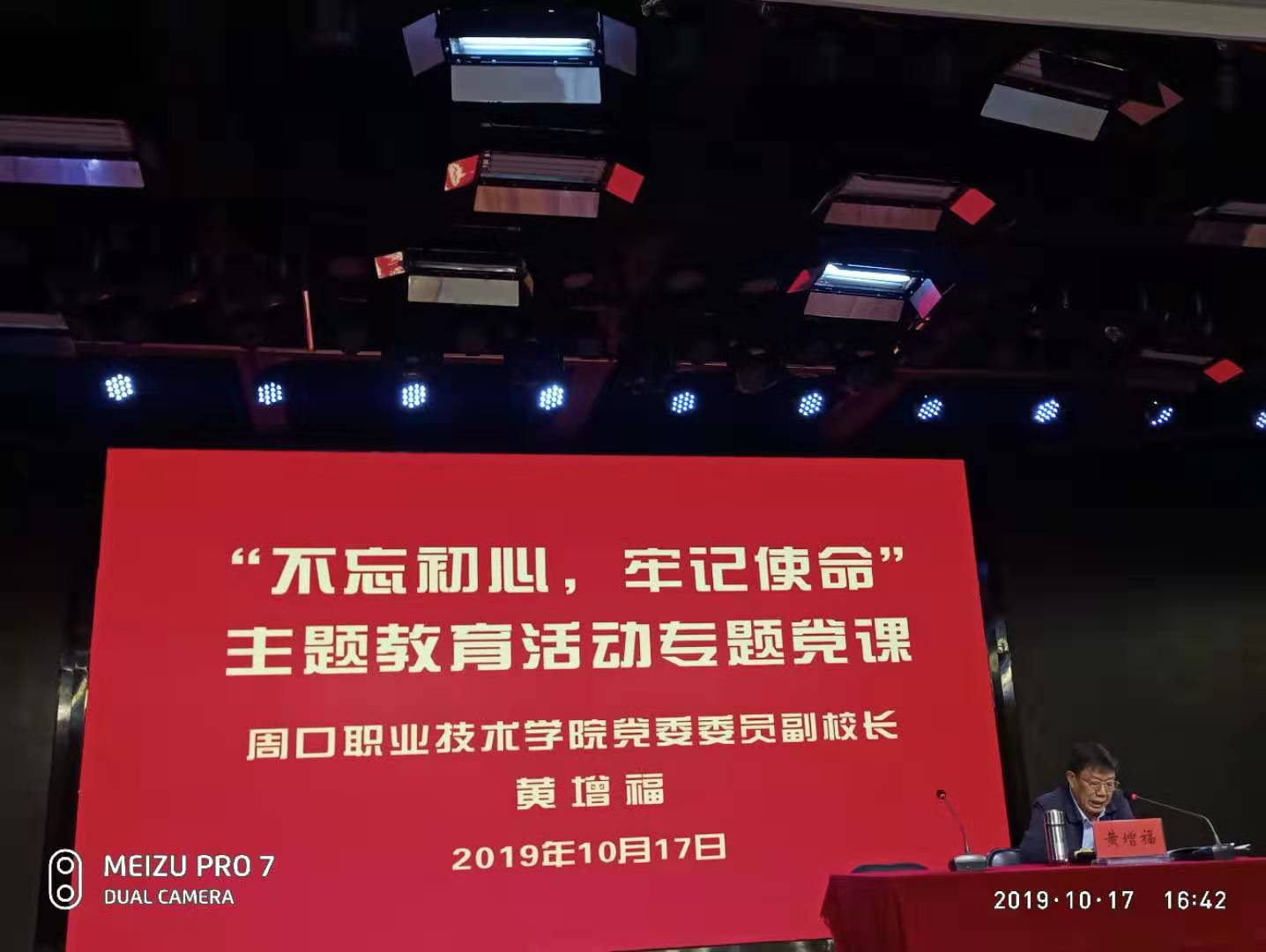 今年9月份以来,全国上下掀起了第二批“不忘初心、牢记使命”主题教育活动的高潮。根据《304永利集团登录入口“不忘初心、牢记使命”主题教育活动实施方案》的通知精神,2019年10月17日下午,黄增福副校长在学前与艺术教育学院演播厅为304永利集团登录入口、保卫处、汽车与机电工程学院全体党员上了一场精彩的专题党课。